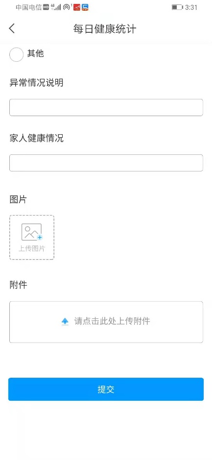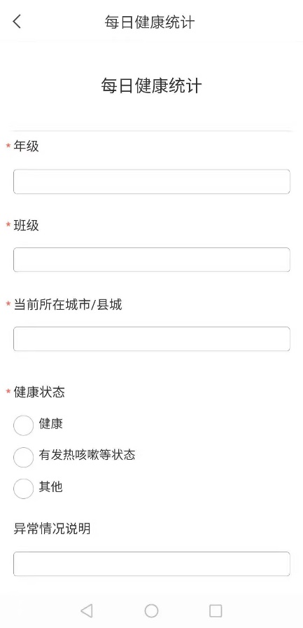 方法二:在“学习通”APP首页,点击顶部“首页”可切换到“三明市农业学校”首页。点击“每日健康统计”,填写完成提交即可。
