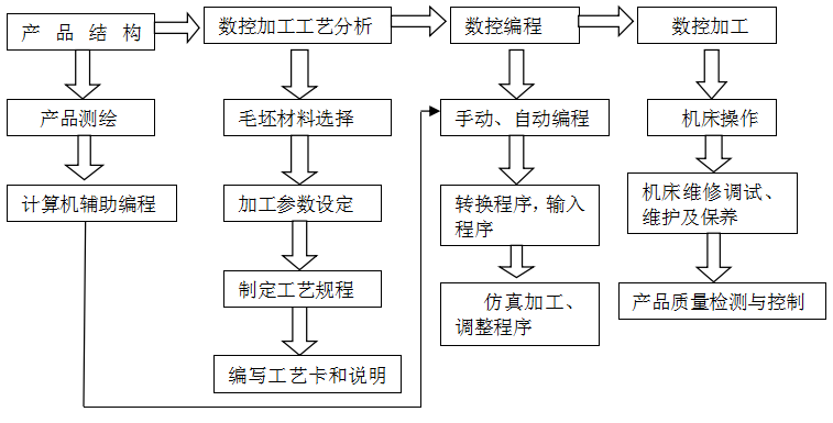 综合不同企业技术工作流程,得出以下数控专业工作流程图(其他工种类似):