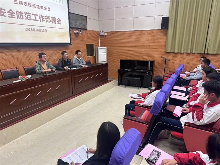 为建设高质量平安校园,切实提高学校安全水准,通过发挥学生干部的中坚力量,及时有效地发现和处置学校的各方面安全隐患,三明市农业学校召开班级安全员安全防范工作部署会。