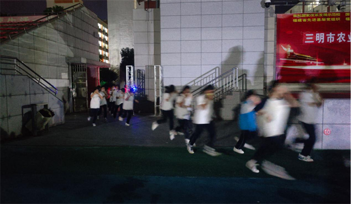 为进一步贯彻习近平总书记关于安全生产重要指示批示精神,强化师生消防安全意识,增强学生夜间自救防护能力,三明市农业学校于2023年9月27日晚开展宿舍夜间消防应急疏散演练。